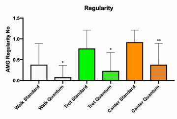 The Quantum was found to result in a significantly more regular muscle pattern for both muscles and for all (3-5) gaits compared with the standard bridle – the difference at the canter was especially significant.